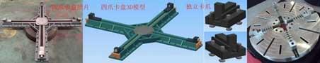 大型回转件的卡盘夹具,十字架式设计的基本思路是利用机床工作台自身的精度保证夹具的定位精度和自动化操作,避免了独立卡爪找正的麻烦、整体卡盘造价昂贵的缺点。