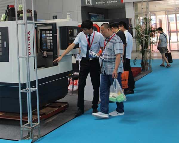8月5日,展会第四天,下午3点左右。这个时间一般就比较忙了,需要设备的客户一般也是展会的最后两天开始购买。我正跟一个客户介绍着我们的小型数控铣床呢。