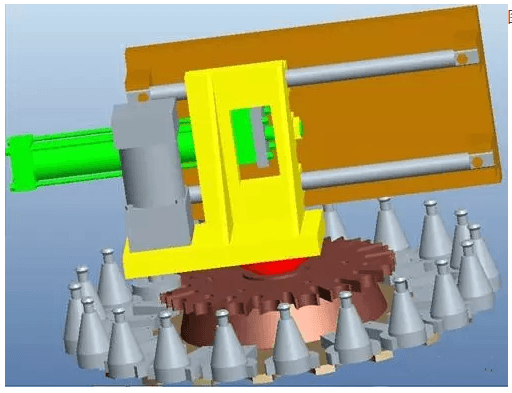 聚彩网 斗笠式自动换刀装置其刀库横移装置采用气压传动,而刀库分度装置则采用槽轮机构来实现。